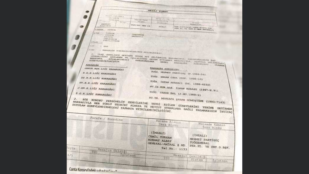 Turhan, söz konusu mesajların askeri bir formatta yazılıp yazılmadığının, bunların plan veya direktif olup olmayacağının ve atama biriminde çalışan birisi tarafından hazırlanıp hazırlanmayacağının bilirkişilere incelettirilmesi taleplerinin reddedildiğini bildirirken de şunları söyledi:
