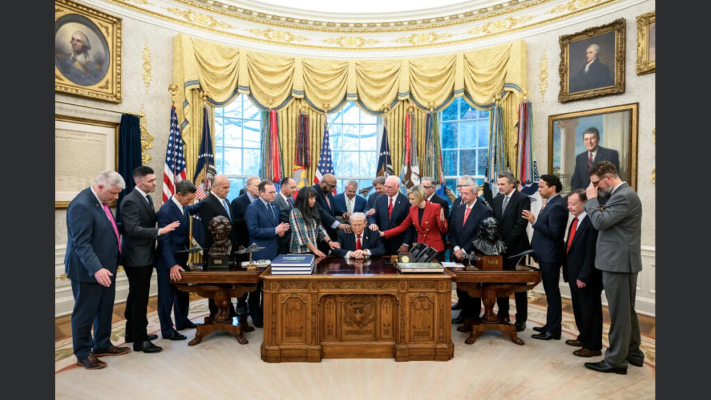 “İslâm bizden nefret ediyor… Müslümanlarla sorun yaşıyoruz ve ülkeye giren Müslümanlarla da sorun yaşıyoruz… Müslümanların ABD’ye girişi tamamen ve kesin olarak durdurulmalıdır…” görüşünde olan Trump Beyaz Saray’da İran saldırısının yedinci günü evanjelistlerle ayin düzenledi.